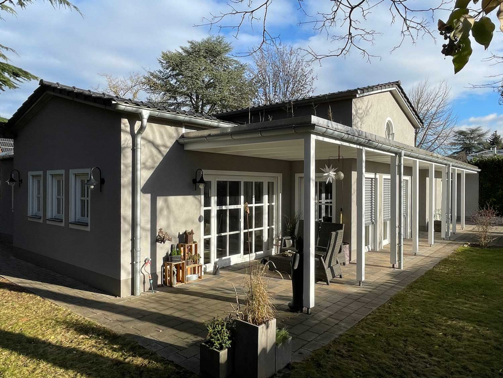 Der eingeschossige Bau vereint gemütliche Atmosphäre mit klarer architektonischer Haltung. Wohnräume auf einer Ebene ermöglichen komfortables Wohnen – zeitlos, stilvoll und funktional zugleich.