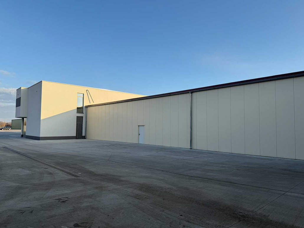 Ein Bau, der wirtschaftliche Anforderungen mit gestalterischem Anspruch vereint. Die Halle bietet flexible Nutzungsmöglichkeiten und hohe technische Standards.