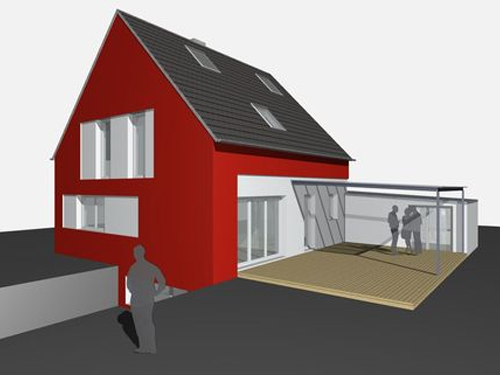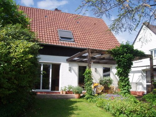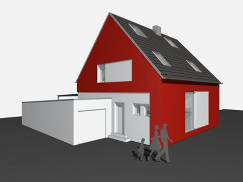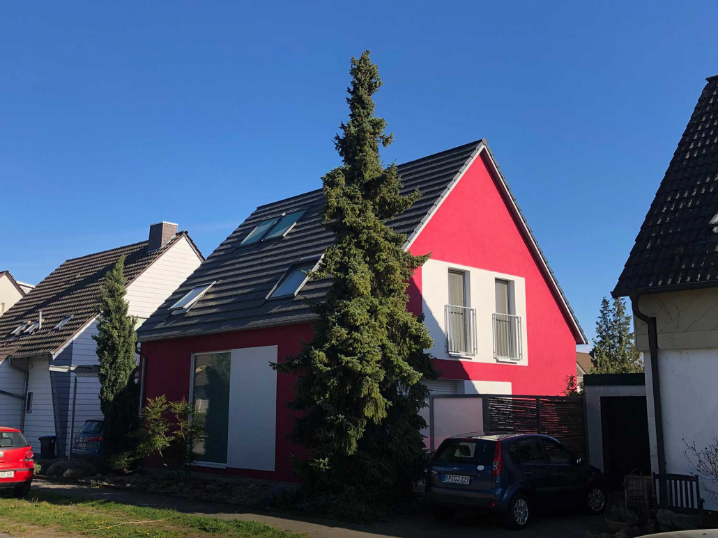 Eine energetische Fassadenmodernisierung mit Dachausbau und großen Dachfenstern machen aus dem alten Siedlungshaus ein Haus Design 2012.