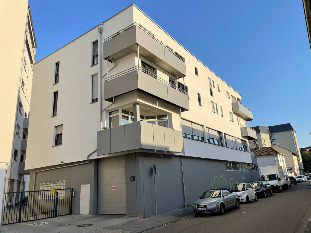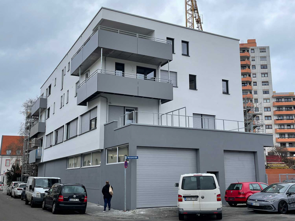 Ein eingeschossiges Bestandsgebäude wurde aufgestockt und zum modernen Mehrfamilienhaus mit integrierter Gewerbeeinheit weiterentwickelt.